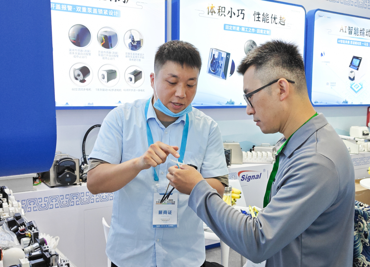 在展會現場,思諾流體展示了眾多蠕動泵產品,包括AI智能型蠕動泵、蠕動泵灌裝系統,新研發的蠕動泵泵頭和OEM等,吸引了眾多參觀者駐足咨詢,展臺人氣旺盛。