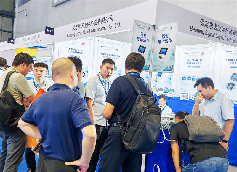 思諾流體攜眾多新品亮相展會,有智能檢測蠕動泵產品,半自動灌裝流水線,AI智能蠕動泵、灌裝系統蠕動泵,新研發的蠕動泵泵頭和OEM等,我們的銷售人員以專業的講解以及現場展示,向各位參展商講解產品亮點。