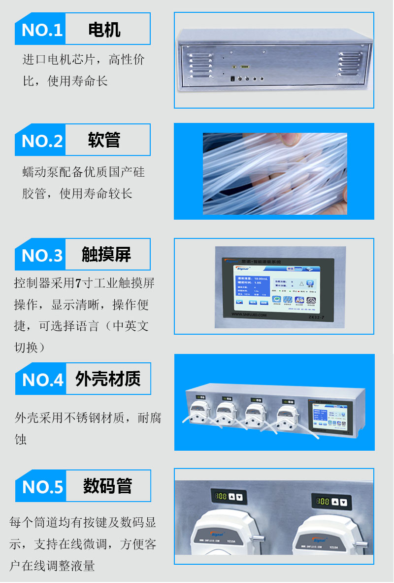 2.外殼采用不銹鋼材質,耐腐蝕。每通道均有按鍵及數碼顯示,支持在線微調,方便客戶在線調整液量