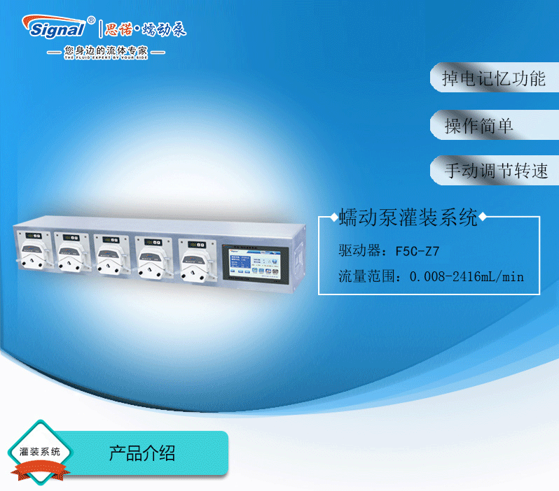 此灌裝系統由5通道組成,通道數量可定制,大可擴展至32通道;可安裝YZ15、YZ25泵頭;