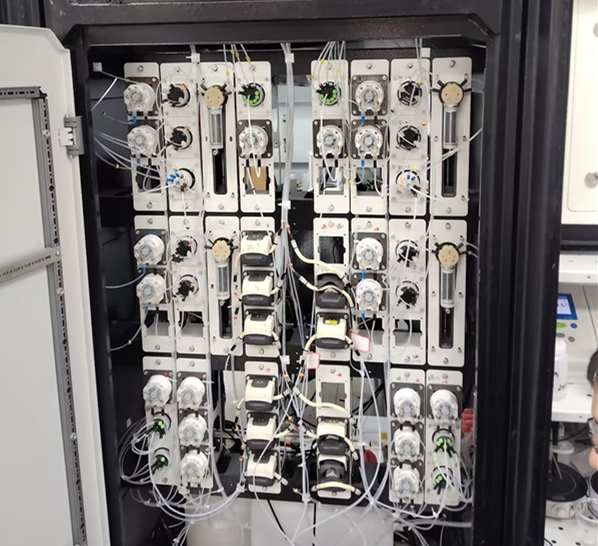 某知名藥企曾長期受此困擾。傳統(tǒng)蠕動泵在長時間運轉后,蠕動泵軟管疲勞或安裝不當極易引發(fā)微滲漏,而操作人員往往在大量粘合劑污染物料后才察覺。為解決這一難題,該企業(yè)引入了思諾大面積蠕動泵濕法工藝多參數在線智能分析系統(tǒng),其中核心組件——具備漏液報警功能的智能蠕動泵,成為工藝升級的關鍵。