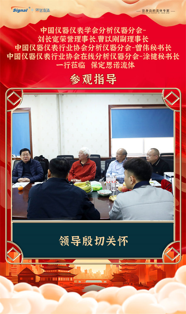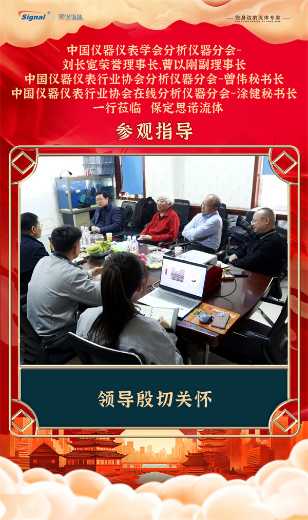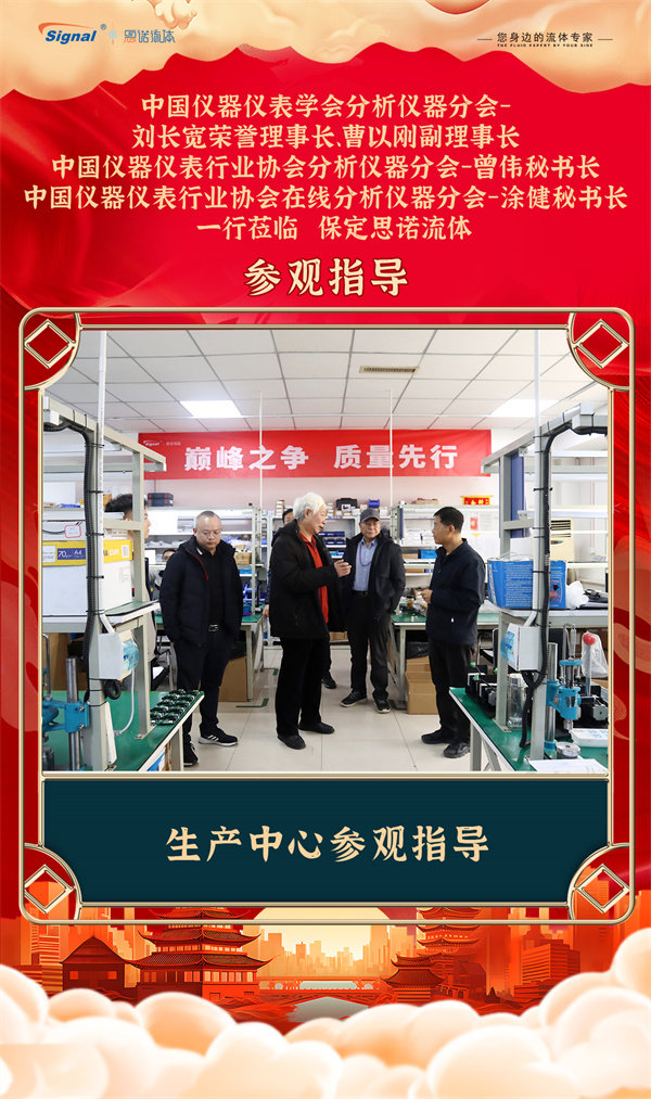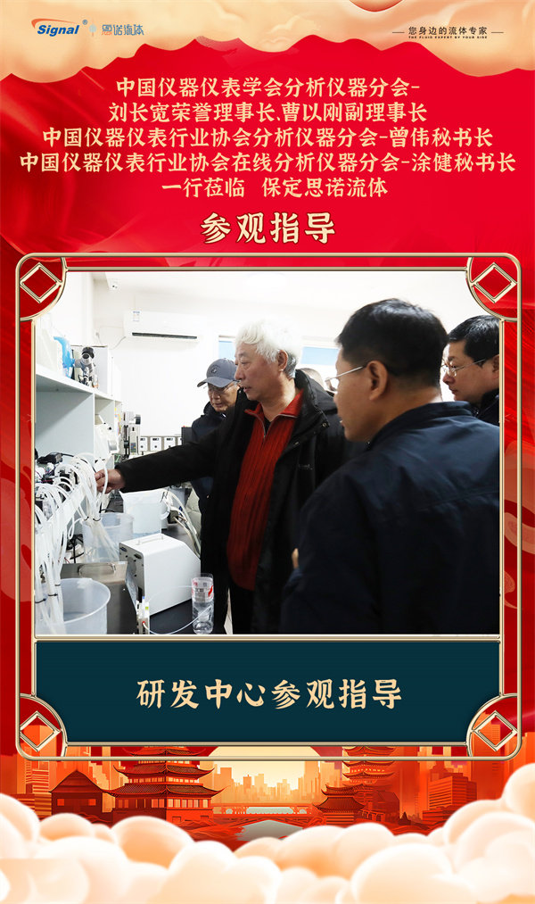 寒冬不寒,情暖人心!2025年12月19日,中國儀器儀表學(xué)會分析儀器分會-劉長寬榮譽理事長、曹以剛副理事長、中國儀器儀表行業(yè)協(xié)會分析儀器分會-曾偉秘書長、中國儀器儀表行業(yè)協(xié)會在線分析儀器分會-涂健秘書長一行蒞臨保定思諾流體參觀指導(dǎo)!公司管理層及相關(guān)部門負(fù)責(zé)人對貴賓的到來表示熱烈歡迎,并全程陪同交流參觀。