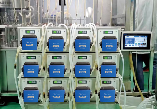 在制藥行業(yè),灌裝是藥品生產(chǎn)的關(guān)鍵工序之一,直接關(guān)系到藥品劑量的準(zhǔn)確性和產(chǎn)品質(zhì)量。無(wú)論是液體注射劑、口服液還是眼藥水,灌裝設(shè)備都必須滿足高精度、高潔凈度、高穩(wěn)定性的嚴(yán)苛要求。思諾低脈動(dòng)SF25L蠕動(dòng)泵憑借其創(chuàng)新的低脈動(dòng)技術(shù)、緊湊的雙通道結(jié)構(gòu)以及多重安全傳感設(shè)計(jì),為制藥灌裝提供了理想的流體解決方案。